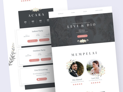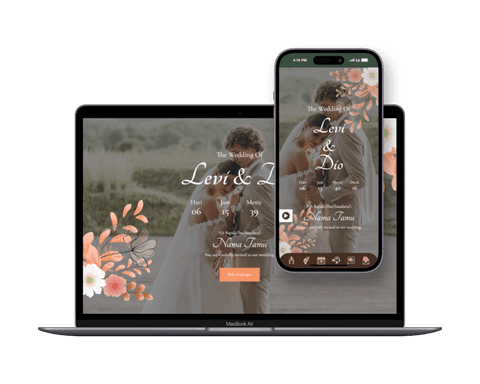 Wedding Invitation Web adalah situs web yang dibuat khusus untuk pernikahan Anda. Di dalamnya, Anda dapat membagikan informasi tentang acara, cerita perjalanan cinta, RSVP online, galeri foto, serta informasi tambahan untuk tamu undangan, seperti lokasi dan dress code.