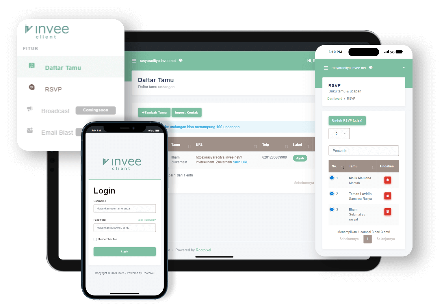 Fitur buku tamu dan RSVP online yang memudahkan tamu untuk konfirmasi dan meninggalkan pesan spesial.