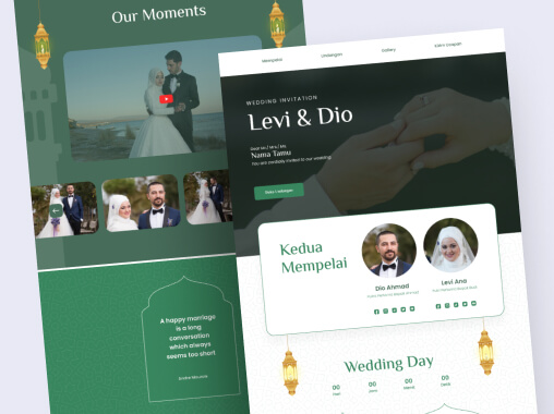 Undangan web dari UGAN ART dirancang untuk menyampaikan cerita Anda dengan praktis dan modern. Menggunakan desain yang responsif dan fitur lengkap, seperti RSVP digital dan lokasi peta langsung, undangan ini dapat diakses kapan saja dari perangkat mana pun. Ideal bagi Anda yang ingin memberikan sentuhan modern dan memudahkan para tamu mengakses informasi dengan sekali klik.